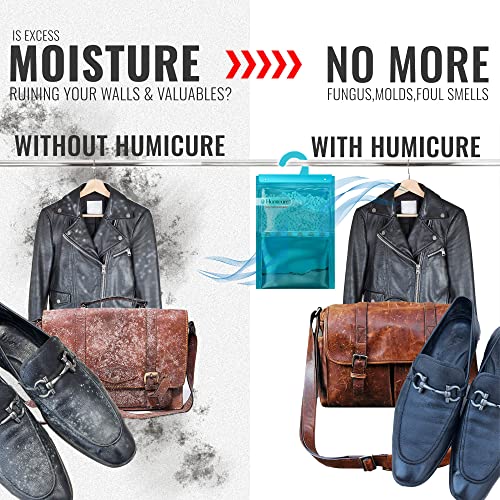 Humicure Moisture Absorber Dehumidifier Hanging Bags with 1 Litre Absorption Capacity for Wardrobe, Bathroom, Kitchen and Bedroom; Prevents Mould & Fungus
